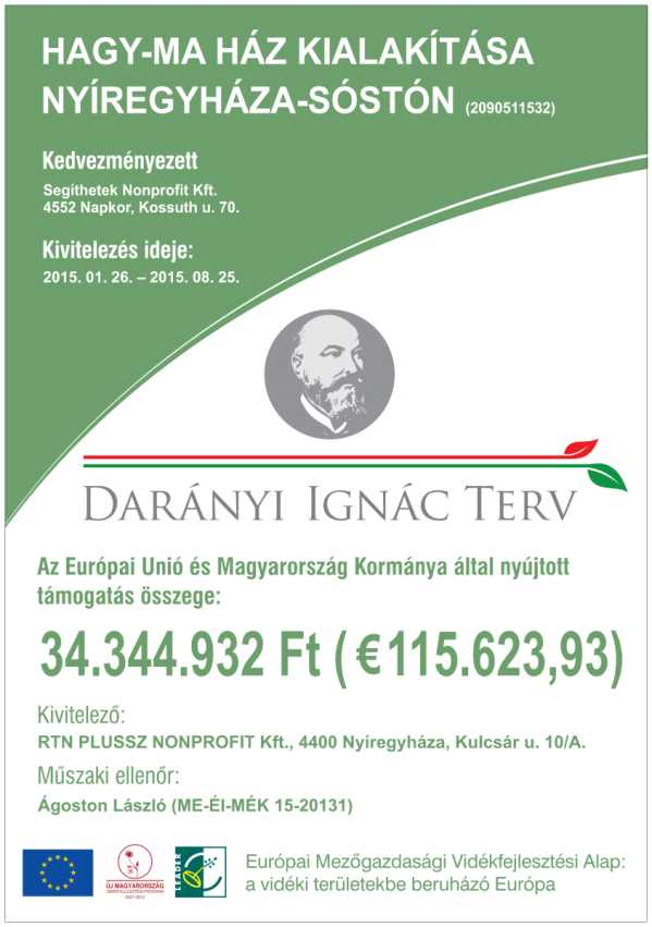 Projekt megnevezése: "Hagy-Ma Ház kialakítása Nyíregyháza-Sóstón"